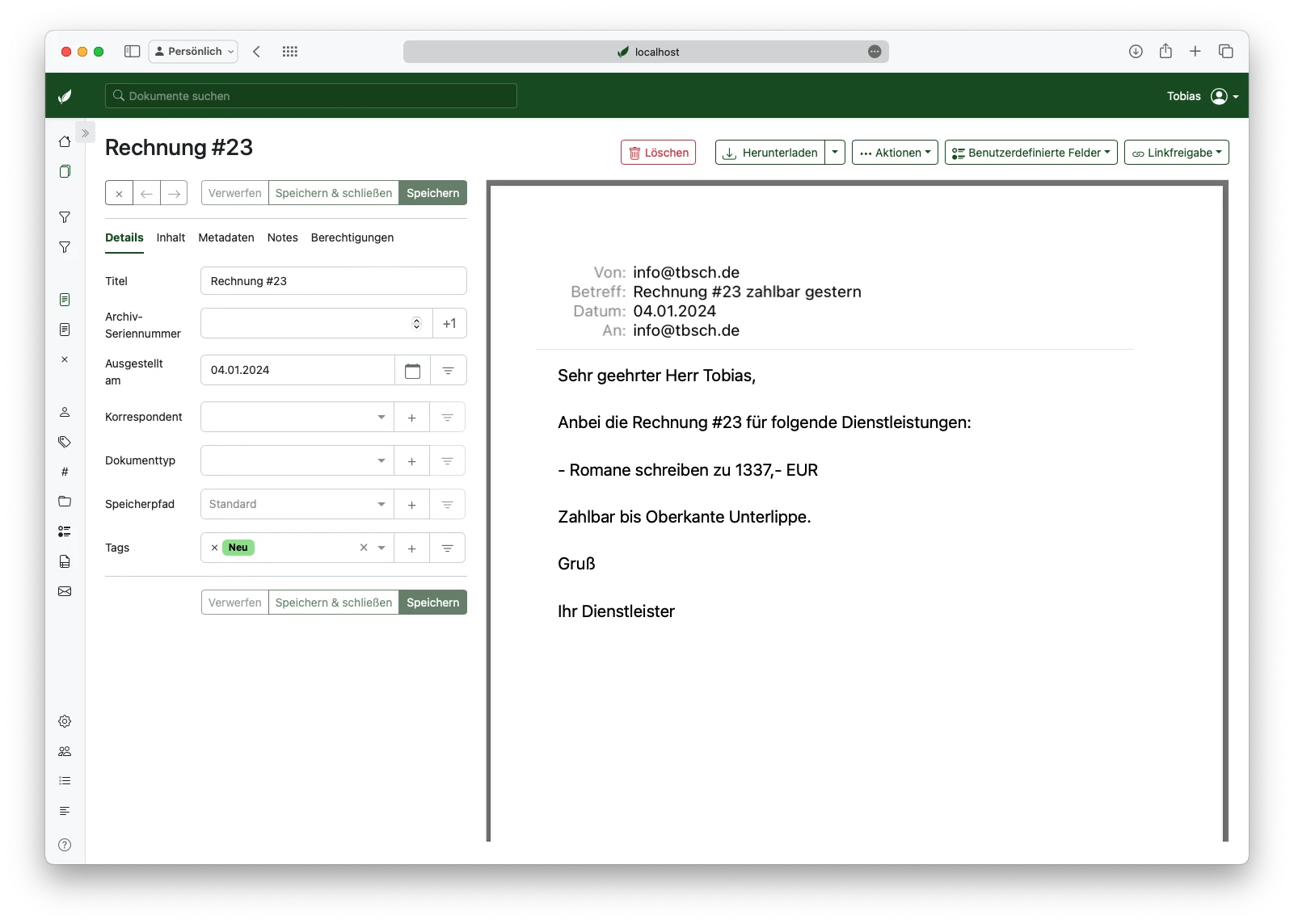 Auf der ersten Seite sprach ich davon, dass Paperless-ngx ein DMS ist. Toll, man kann damit also seine Dokumente organisieren. Das können Leitz-Ordner auch 😆. Ja, die Arbeit eines DMS beginnt eben mit dem Lagern von Dokumenten, genau wie bei einem Leitz-Ordner.