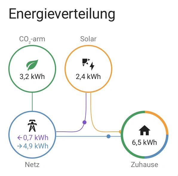 Mit Home Assistant überwache ich jederzeit Stromproduktion und -verbrauch in meinem Haushalt. Sehen wir uns doch einmal den heutigen, eher durchwachsenen und bewölkten Tag an: