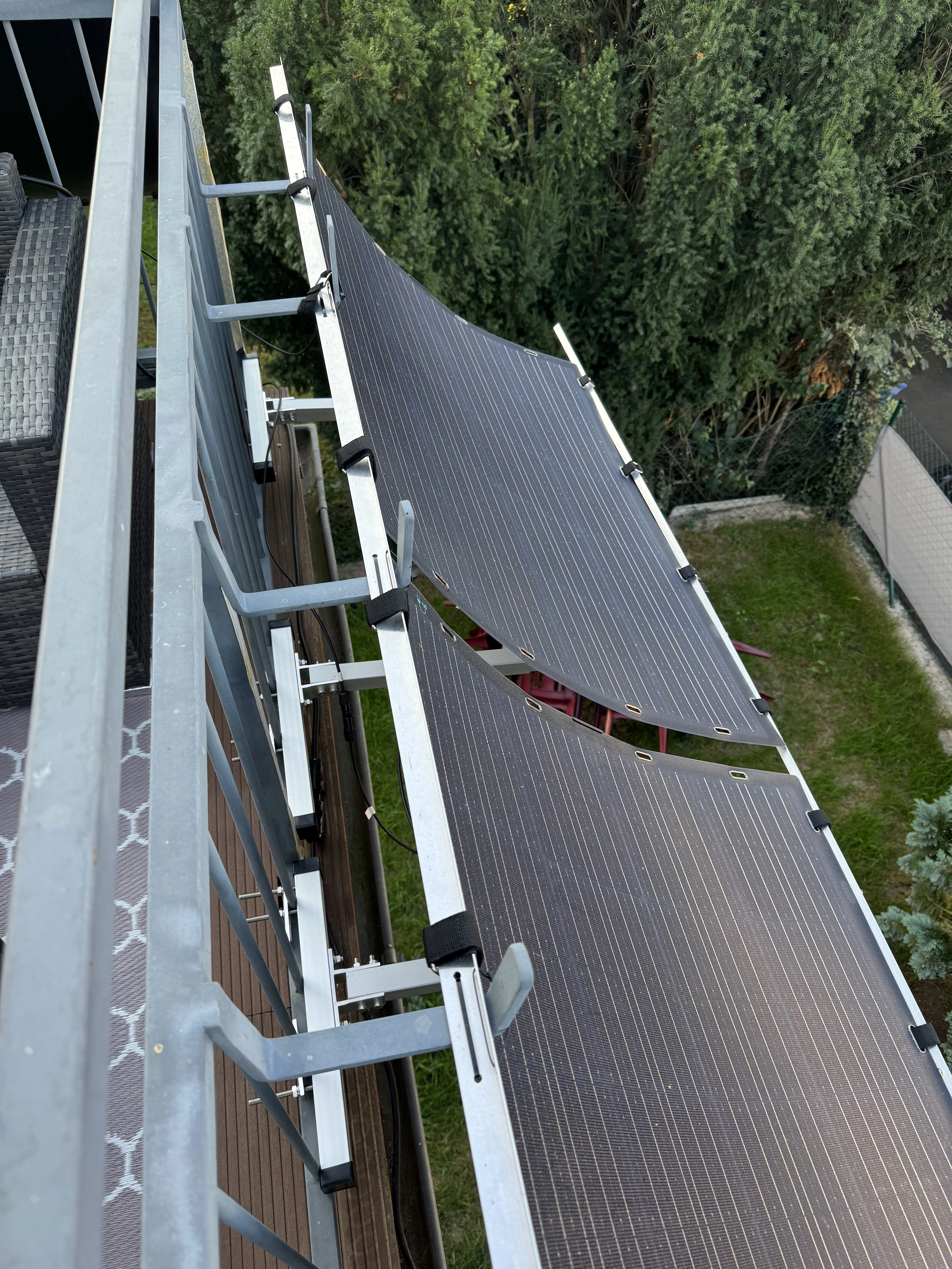 Das nahezu unüberschaubare Angebot an Balkonkraftwerken hat mich zunächst überwältigt, daher habe ich genau überlegt, welche Anlage am besten zu meiner Situation passt. Mein Balkon bietet leider keine idealen Bedingungen für die Anbringung von Solarmodulen, da sich an der Außenseite Halterungen für Blumenkästen befinden. Ein 20kg schweres Solarmodul hätte ich hier niemals aufhängen können. Nach langer Recherche fand ich dann sogenannte Ultraleicht-Module, die 3kg pro Stück wiegen, aber auch ein Quäntchen weniger leisten.